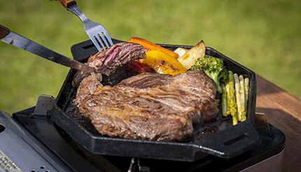 5mmの肉厚の構造とダクタイル鋳鉄の採用によって、食材に熱を均一に伝えるので、効率よく短時間で一気に肉の旨味を閉じ込められる。さらに、蓄熱性に優れ長い時間鉄板を温かいままに保てるので、調理したお肉をいつまでもおいしく食べることができる。