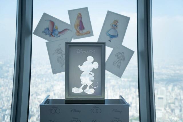 エレベーターに乗って地上350mの天望デッキに昇ると、Disney100のフォトロケーションがあります。