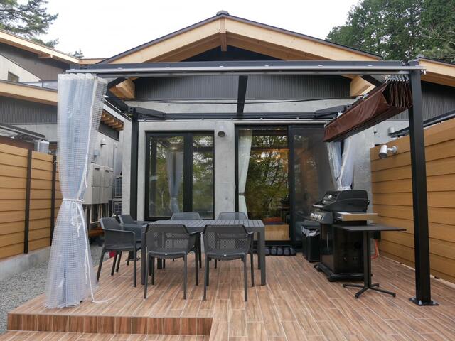 デッキでは、BBQグリルが完備。風雨も避けられるようになっているので、全天候思いっきり楽しめます。