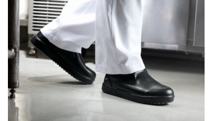 「SOFPON」は、スポーツシューズ開発ノウハウを活かした、滑りにくさを考慮したアウトソールの意匠によって厨房での転倒リスク抑制と立った姿勢での安定性を追求したワークシューズ。クッション性やソフトな履き心地も追求している。