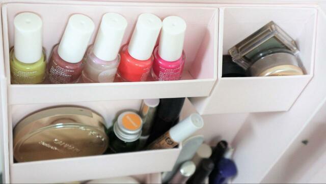 容量の大きなベースメイク系よりも、こまごましたポイントメイクやネイルケア用品の収納に向いていると感じました。