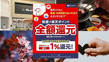 楽天ペイメントは、「楽天ペイ」アプリを利用した請求書払いサービスの開始にあわせ、「税金・公共料金のお支払いは楽天ペイで!抽選で全額還元、はずれても全員もれなく最大1%還元」キャンペーンを実施している。期間は4月17日10時~5月31日23時59分。