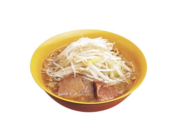 自慢の極太平打ち麺が見えなくなるほど、たっぷりのモヤシをトッピング