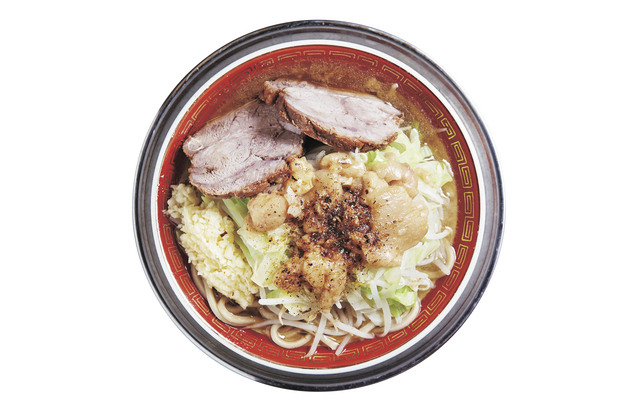 トンコツダシや背脂、野菜などでとる贅沢なスープと具材のバランスがとれた1杯は、総重量がなんと1.1kg。希少部位を用いた絶品の柔らかチャーシューとともに味わおう。