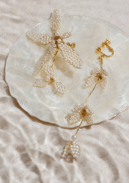 小粒のパールを組み合わせて、大小さまざまな草花が形づくられた、上品かわいいシリーズ。