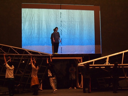 誰もが予想だにしなかったエヴァの舞台化に挑むのは、こちらも世界的な人気を誇るシディ・ラルビ・シェルカウイ。ダンサーらとの身体性の高い、そして美しい劇空間の作り手として知られ、演出のみならず構成・振付も手がける。だがそんなラルビをもってしても、やはりエヴァを舞台化するのはたやすいことではない。稽古場では日々台本の練り直し、また動きの調整などが細かく行われていた。