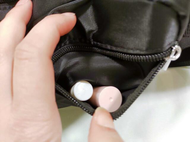 今回の記事では、バッグ右側ポケット(刺繍ロゴが入っている方)にて、よく使うことの多いリップ、口紅を入れてみました。