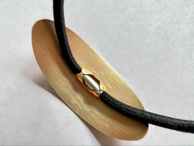 黒いゴムに、楕円系のゴールドプレートが付属しているヘアアクセサリーです。