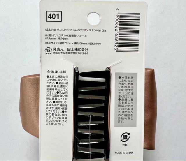 1つ目は「401 バンスクリップ ふんわりリボン サテン/Hair Clip」です。