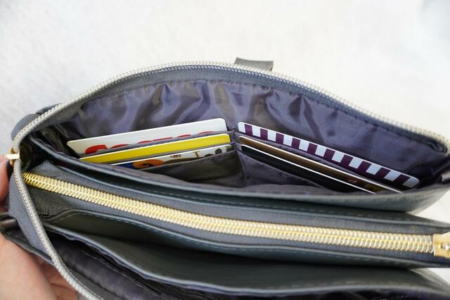 反対側のカードポケット付き収納には、カードが6枚入るポケットが。