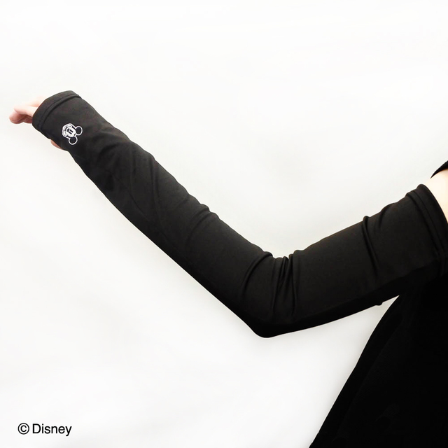 アームカバーは、黒地で、手元にミッキーの顔をワンポイントでデザイン。