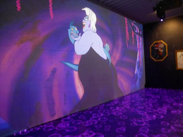 続く小部屋では、『リトル・マーメイド』のアースラが歌う「哀れな人々」を聴きながら、妖艶なヴィランズの世界へ。