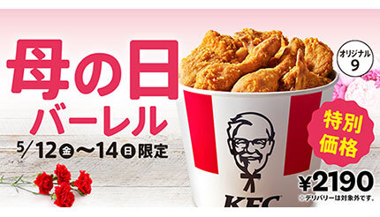 オリジナルチキン×9ピース入りの「母の日バーレル」を3日間限定で販売