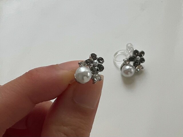 なお、こちらも樹脂が使用されているので、着けた感じは若干きつめですが、ピアスのように着けることができます。