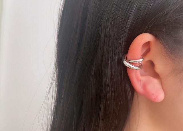 光沢感があるシルバーのイヤーカフです。