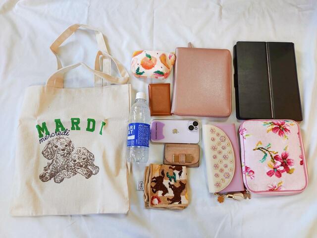 バッグのイラストが女性らしいデザインなので、フェミニンなファッションアイテムともピッタリマッチしますね。