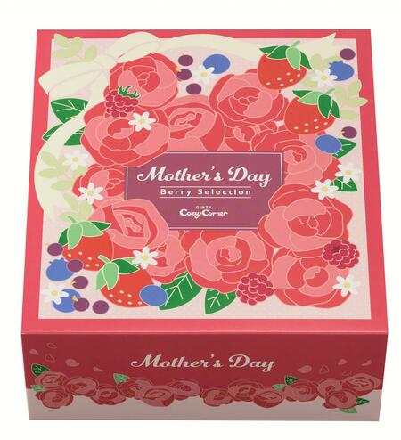 「母の日ベリーセレクション(9個入)」はタルト、モンブラン、ロールケーキなどのプチケーキのアソート。花束がデザインされた専用BOX入りで、家族で分けて楽しめるのでコスパも良し。