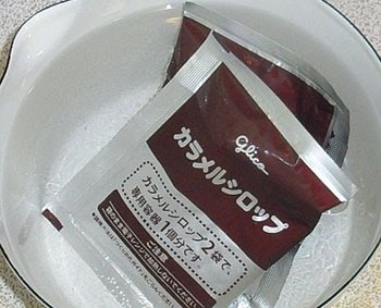 そして付属のカラメルシロップをレトルトカレーなどの容量で温めて……