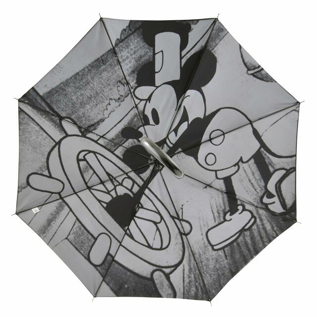傘を開くと、『蒸気船ウィリー』のミッキーなど、映画のワンシーンが全面にプリントされた、大胆なデザインです。
