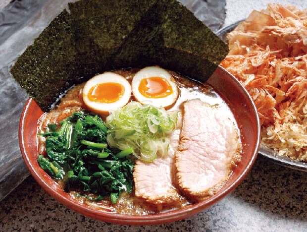 スープはこってりしたトンコツと魚介の豊かな風味が絶妙なバランスで保たれているのが魅力。スープによく絡む麺を口にすると、豊かな魚介の香りがダイレクトに伝わってくる。
