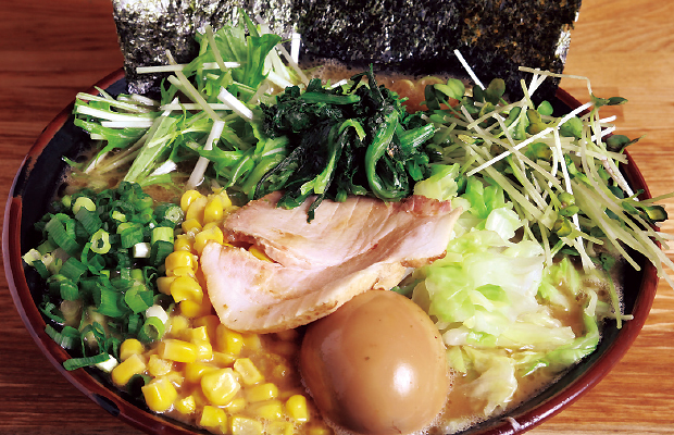 家系の中ではマイルドな味のスープを提供しており、その喉越しの良さが子供から年配の方まで幅広い客層に好まれている。山のように添えられた盛りだくさんのトッピングが食欲をそそる。