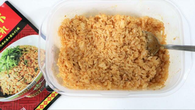 3分ほど混ぜると、たれが1粒1粒をコーティングしてチャーハンのような仕上がりに。