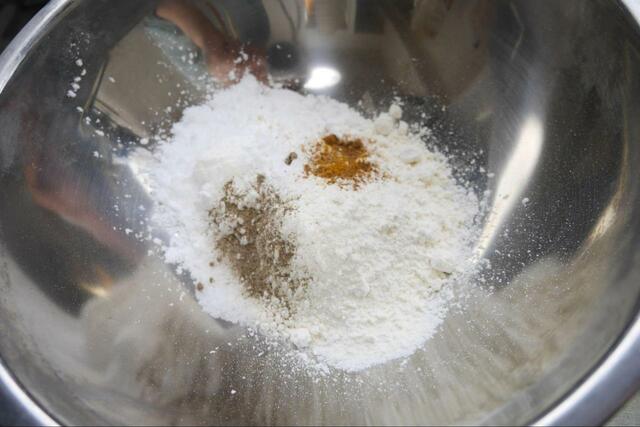 1.ボウルにフライドチキンパウダーの材料を入れてよく混ぜ合わせます。