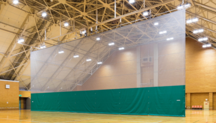 天井から降りてきた面状の幕が床面の高さで停止するため、ネットのように床に溜まって足を滑らせたり、シャトルやピンポン球が網目を通り抜けたりしないので、安全に使用できる。空間としての独立性が高くなるので、利用者からは「競技や活動に集中できる」といった意見が寄せられている。また、災害時の避難場所として使う際には、プライバシーの確保に役立つ。