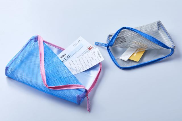 Mサイズ、Lサイズには内側に透明ポケットが付いており、領収証やリーフレットなどの保管にも便利です。