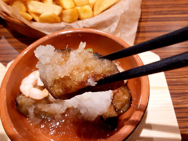 器の下の方に並んでいる揚げナスは、タレが染み込んでジューシー。こちらも大根おろしとの相性はバッチリ。