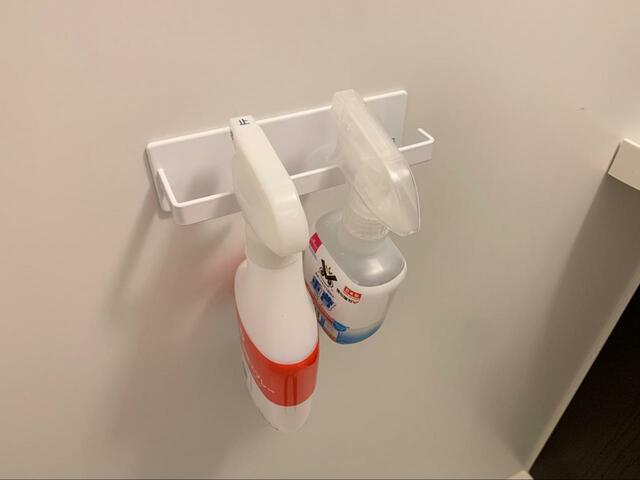 浴室用の洗剤や、衛生面が気になるときに使うアルコールスプレーなどをかけておけば、日々の掃除へのハードルが下がりそう。