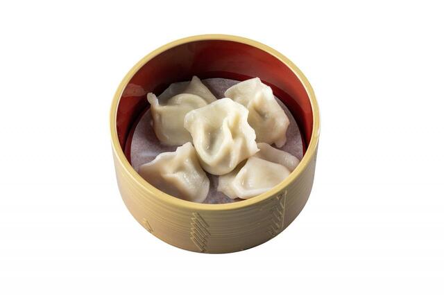 お役立ちアイテム、フードカッターで細かくした蒸し餃子(460円)と、豚角煮ライス(450円)のご飯を合わせ、チキンと海老の白湯麺(単品1,300円)のスープをかければ、栄養たっぷりの即席中華雑炊に。