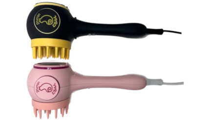 「グルーミングぐるみん」は、専用アタッチメントを装着して、ブラッシングの要領で犬や猫の体毛をとかしてあげるだけで、ノミやダニの駆除・殺虫、および細菌類の滅菌・感染症対策が可能なペット専用ドライヤー。