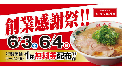 魁力屋は6月3~4日の期間、「京都北白川 ラーメン魁力屋」全店舗で「創業感謝祭」を開催する。