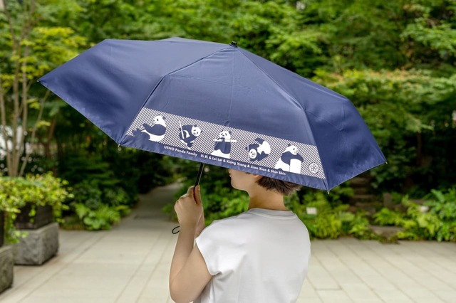 例えば、使い勝手のいい晴雨兼用の折りたたみ傘「上野パンダファミリー 高機能傘」は、涼しげなネイビーとブルーグレーの2色で登場。遮光率99.99%以上・UVカット99.99%以上の生地(HEAT BLOCK)を使用した、かわいいだけでなく機能性にもすぐれたアイテムです。