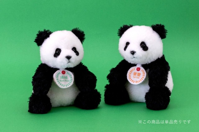 恩賜上野動物園の「シャオシャオ」と「レイレイ」をモチーフにした、ふわもこなぬいぐるみが登場! 手足が柔らかく、さまざまなポーズを取って遊べます。
