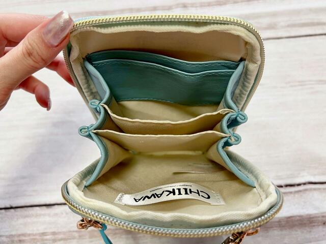 外側と内側を合わせると、なんと7つのポケット付きのスマホショルダーなんです!試しにものを入れてみると…