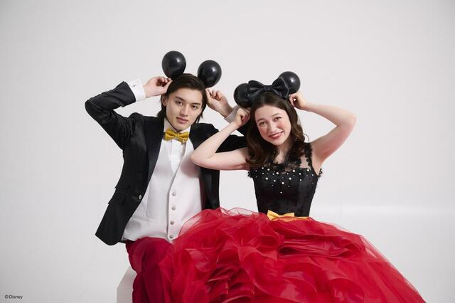 アイコニックなミッキー風ドレスでは、元気いっぱいの表情で撮影。