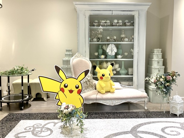 そんなおしゃれな空間に置かれたピカチュウのぬいぐるみやパネルがお出迎えしてくれました。