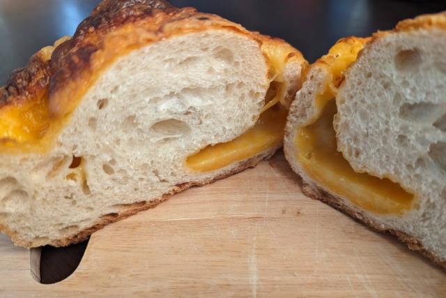 3種のチーズを使っているだけあって、チーズの風味が濃厚! 表面がカリッと、中はもちっとした塩気のある生地は、しっかりとした食べ応えがあります。