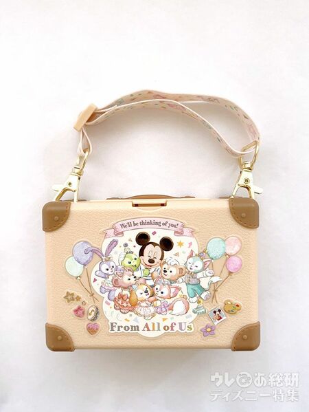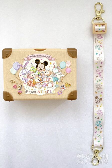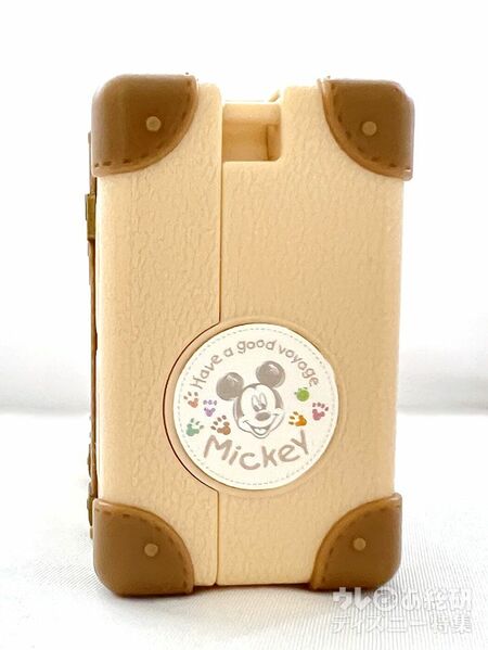 旅立つミッキーのトランクをイメージしたミニスナックケース。別添えのチョコを入れてパークでのおやつに。