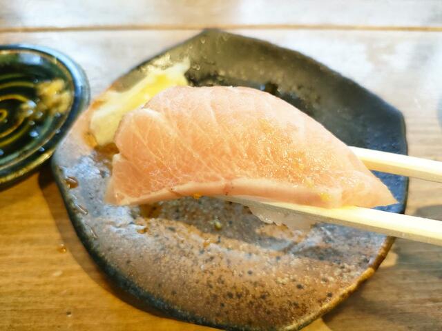 口に入れた瞬間、ネタの旨みが広がるのと並行し、シャリがパラパラっと口の中でほぐれ、まさに至福の味わいでした。