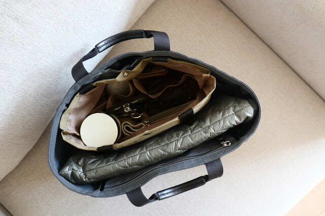 横幅は約23cm、奥行きは12cm。高さは24cmあるので、バッグの中でちゃんと仕切りの役割を果たしてくれます。大きめバッグに入れたときに空きスペースができるくらいのサイズ感です。
