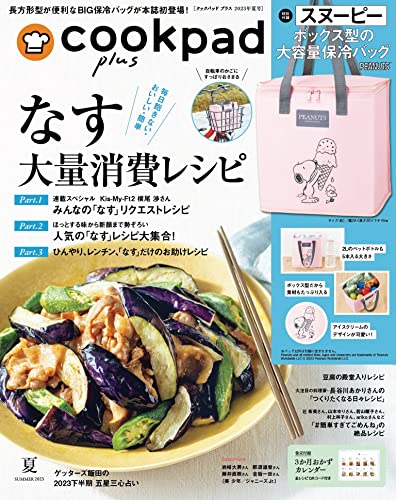 扶桑社から5月25日に発売された『cookpad plus(クックパッドプラス)2023年夏号』には、「スヌーピー ボックス型の大容量保冷バッグ」が特別付録としてついてきます。