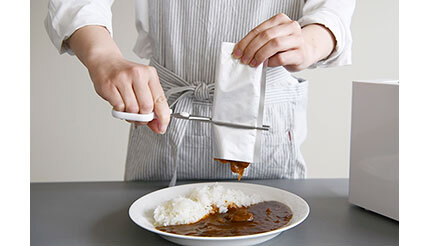 「れとらくはさみ」は、1本で「つかむ・きる・しぼる」の3つの機能を持ち合わせた、レトルト食品用の多機能ハサミ。手軽さが魅力のレトルト食品だが、その一方でパウチを扱うときには、(1)パウチをつかむときに「熱くて危険」、(2)パウチを切るときに「中身が飛び散る」、(3)パウチの「中身が完全にしぼり出せない」--という3つの悩みがあった。