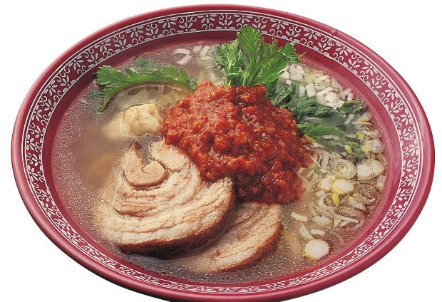 基本チャーシュー、春菊、ワンタンなど トッピング味玉100円、エビワンタン300円、辛味ネギ300円