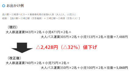 なお、鉄道に先立ち、9月1日から京急グループの京急電鉄バス(京急バス)も小児IC均一運賃(全区間均一100円)を導入し、子育て世代の家計負担軽減を促進する。京急バスでは、あわせて「金額式IC定期券」の購入金額内乗り降り自由エリアを拡大も行い、生活圏ではないエリアへの外出を応援する。