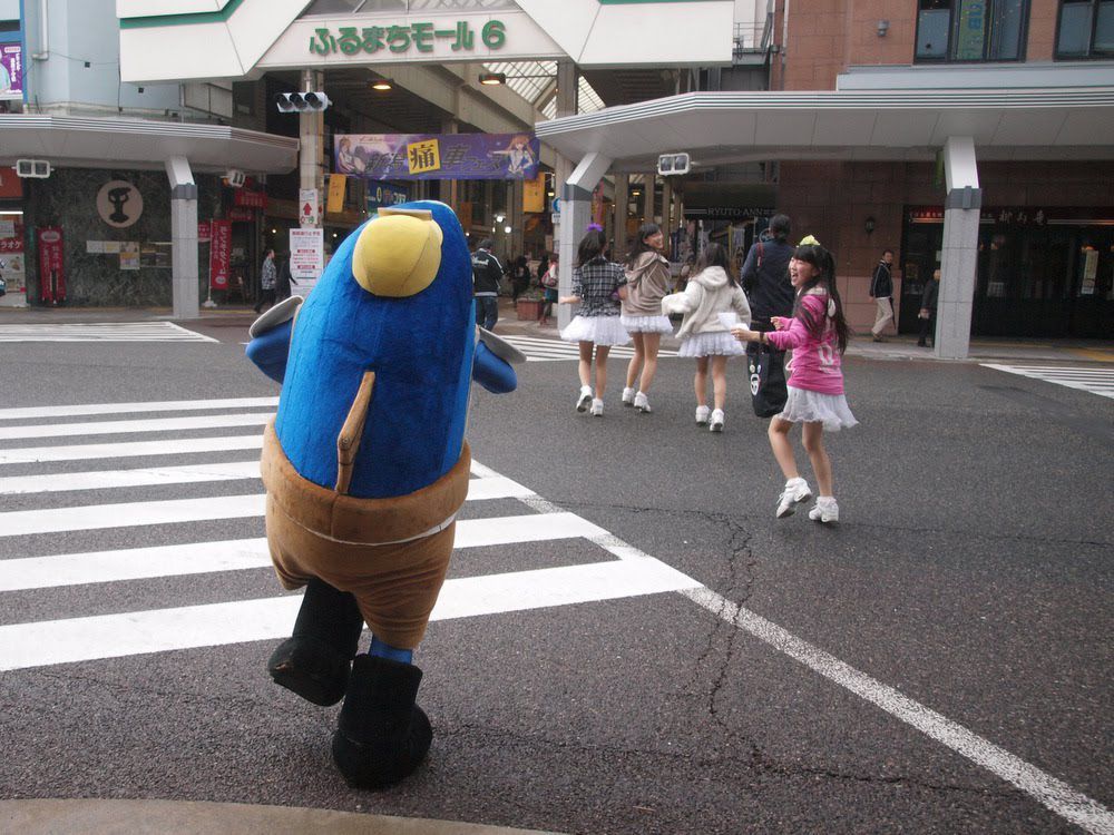 そうなんです。インタビューの中でも登場していた新潟のゆるキャラ、ブリカツくんが古町商店街でRYUTistと遭遇、そのままイベント会場まで一緒に移動、という夢のようなイベントが出現!