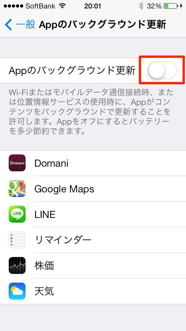 チェック1:Appのバックグラウンド更新をオフにする