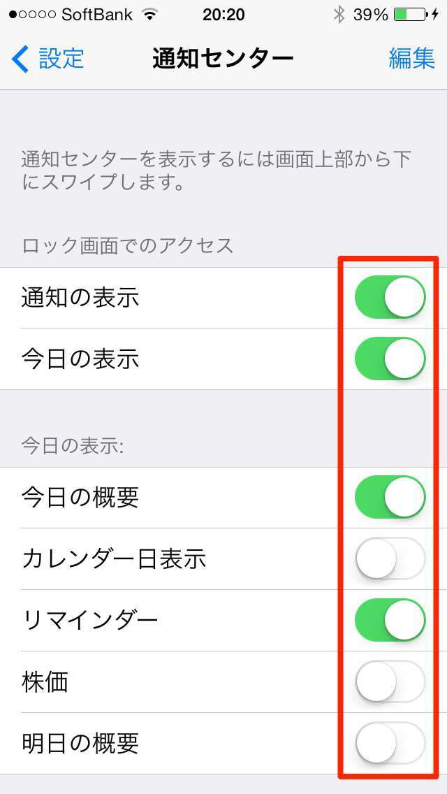 ●「設定」→「通知センター」